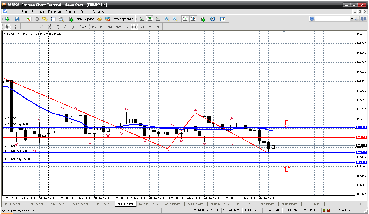 Далее - евро-йена. Пара с утра снижалась, даже уже достигала уровня первой поддержки 140.29. Но для покупок такой глубины маловато. Жду теста 140 и от поддержки 139.88 пару буду покупать. Цель - фигура 141. Пока такой план действий. О продажах говорить пока рановато. Прикрепленные файлы: