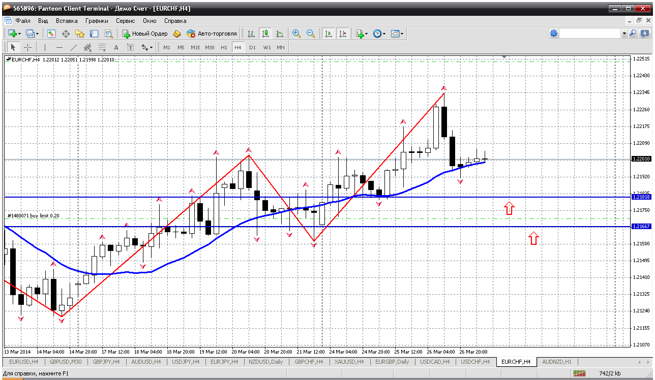 по этой паре предполагаю вот такое развитие событий: сейчас 1.22 пока сдерживает снижение. Да там и мувинг на Н4 тоже не пускает цену ниже. Но думаю, что все равно продавят и опустятся до 1.2181 - первая поддержка внутри дня. Там и покупать буду...продажи обоснованные не раньше 1.2250 - второе сопротивление на сегодня Прикрепленные файлы: