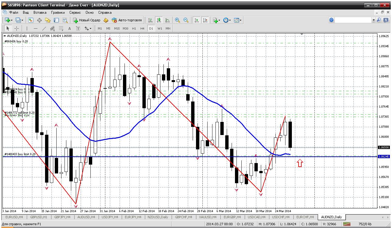 Австр. - НЗД...пара несколько дней пыталась расти, а сегодня в течении нескольких часов перекрыли весь этот рост. Даааа, ставки это весомый аргумент на рынке форекс, особенно, когда они поддерживаются только руководством какой то одной страны (НЗ как сейчас). А цена уже подошла к уровню второй поддержки 1.0625, от неё и купим. Там же и мувинг дневной. Вполне вероятен отскок. Прикрепленные файлы: