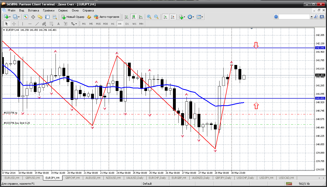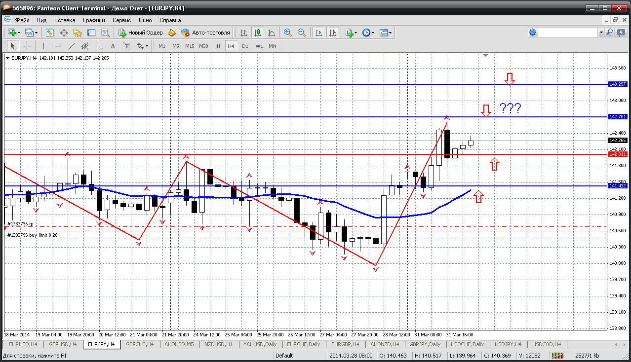 Далее у нас евро-йена. Вроде у пары появилось основное направление - рост. И сегодня уделяем внимание, в первую очередь, покупкам. И можно уже начинать от 142.01 - пивот сегодняшнего дня. Но безопаснее от поддержки 141.43.... продажи обоснованные и безопасные из фигуры 143, а именно от сопротивления 143.29... Прикрепленные файлы:
