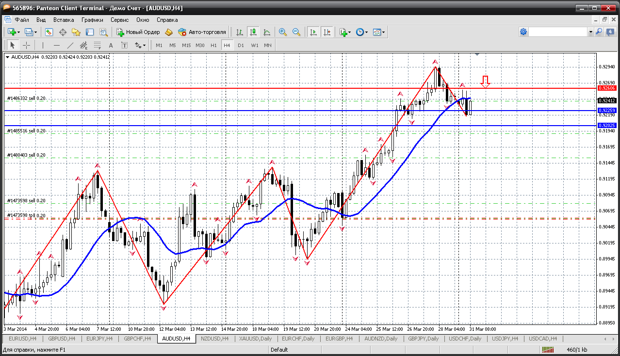 Австралиец...с утра неплохо снизился и даже ушел ниже мувинга на Н4 и даже протестировал первую поддержку 0.9225. Получается, что основное направление на сегодня - на юг. На откате пару можно продать. Конечно, сопротивление 0.9283 замечательно для продажи, но такой цены, скорее всего, не будет. А вот пивот 0.9261 вполне возможен, от него и продадим.... Прикрепленные файлы: