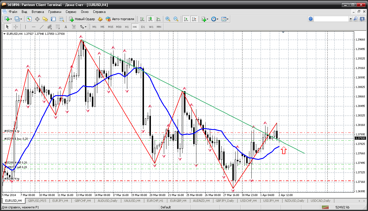 Кстати, есть желание вернуться к евродоллару.Продали от 1.3815 - прибыль зафиксировали. А вот теперь на этом уровне 1.3792, а это напоминаю, пивот сегодняшнего дня, цена топчется уже довольно продолжительное время. Поэтому вполне вероятно пару купить прямо по текущей цене 1.3791....если что, то нас снизу поддерживают и пробитая трендовая и мувинг на Н4. Считаю, что попробовать можно. Прикрепленные файлы: