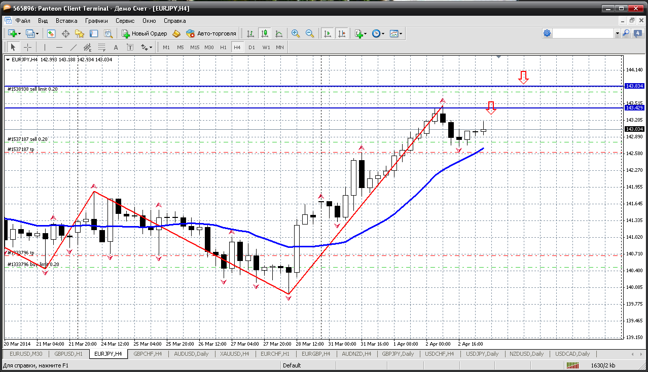 Евро -йена....эту пару и сегодня надо продавать. Причем более агрессивно, чем вчера, когда осторожничали и получилось, что излишне. А сегодня продать можно уже и от первого сопротивления 143.42 и если и исполнят какой "прощальный салют", то от 143.83 - усреднимся... Прикрепленные файлы: