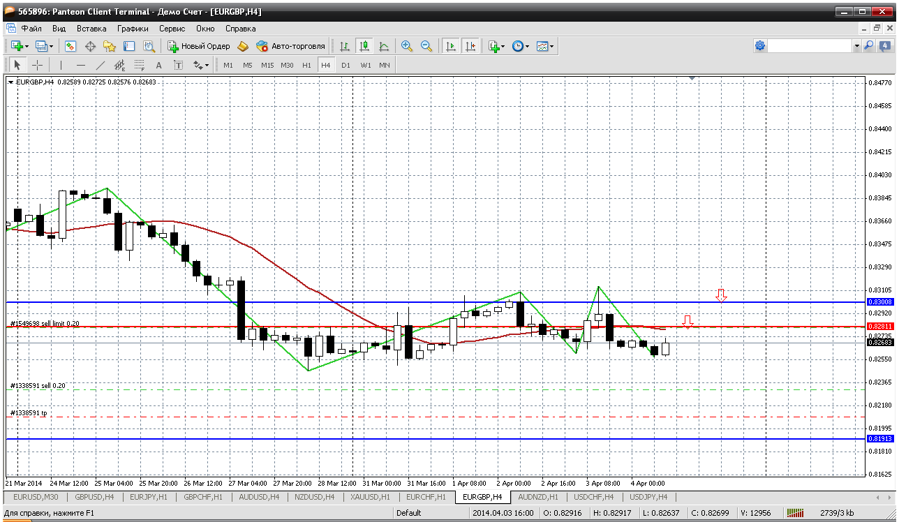 Далее евро-фунт. Продолжаем искать возможность продать пару. Сейчас ждем отката, небольшого роста до отметки 0.8281. Это у нас пивот сегодняшнего дня, от него открываем продажи. К тому же, практически на ом же уровне мувинг расположен на Н4, который тоже сдержит дальнейший рост....0.83 - ближайшее сопротивление, если что, от него усредним.... Прикрепленные файлы: