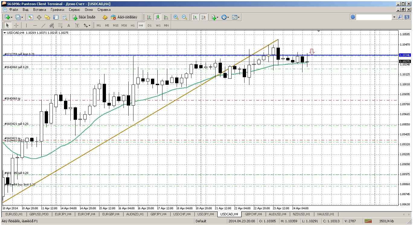 Канадец, последняя наша пара из списка, который анализируем. Итак, цена ходит "кругами" вокруг отметки 1.1030 (уже вторую неделю). Получается, что без нормального отката идти дальше вверх цена уже не может. И хотя бы минимальная коррекция до пробитого мувинга на Н4 нужна. А это район 1.0980. Как то так. Поэтому пробуем продать пару от 1.1034 (пивот дня). Сопротивление 1.1050 вряд ли достигнут. Прикрепленные файлы: