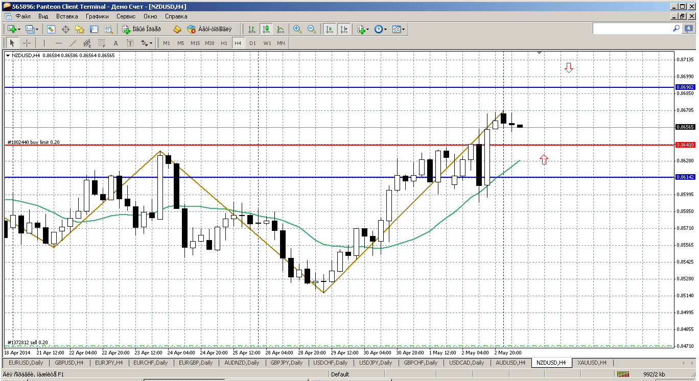 НЗД...пара с прошлого вторника возобновила свой рост. Рановато, ждал коррекцию пониже. Но ничего не поделать, продолжаем работать. Можно попробовать встать в это движение, но, конечно, после отката, от приличной поддержки. Так вот по паре ближайший серьезный уровень 0.8641 - пивот сегодняшнего дня, ниже вряд ли цену глубоко увидим, поэтому от него можно и купить. Продажи от круглого уровня 0.87, который расположен между двумя сопротивлениями 0.8690 и 0.8717. А можно и от сопротивления первого 0.8690 начинать... Прикрепленные файлы: