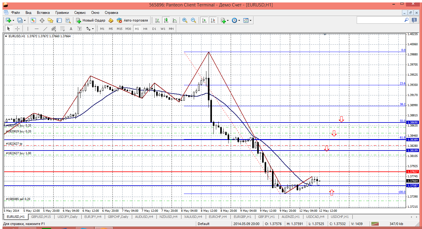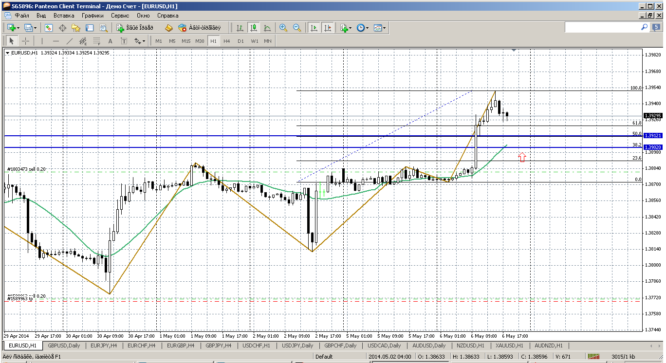 Ну да ладно, это высокие материи - торговать надо. Так вот сейчас надо просто забыть на каких уровнях находится цена в этом году, а просто взять сегодняшнее движение, а оно в рост и на откате в зоне 50 % или 61.8% (можно при тесте 1.3898) пару покупать. Скорее всего 1.40 будут тестировать. Прикрепленные файлы: