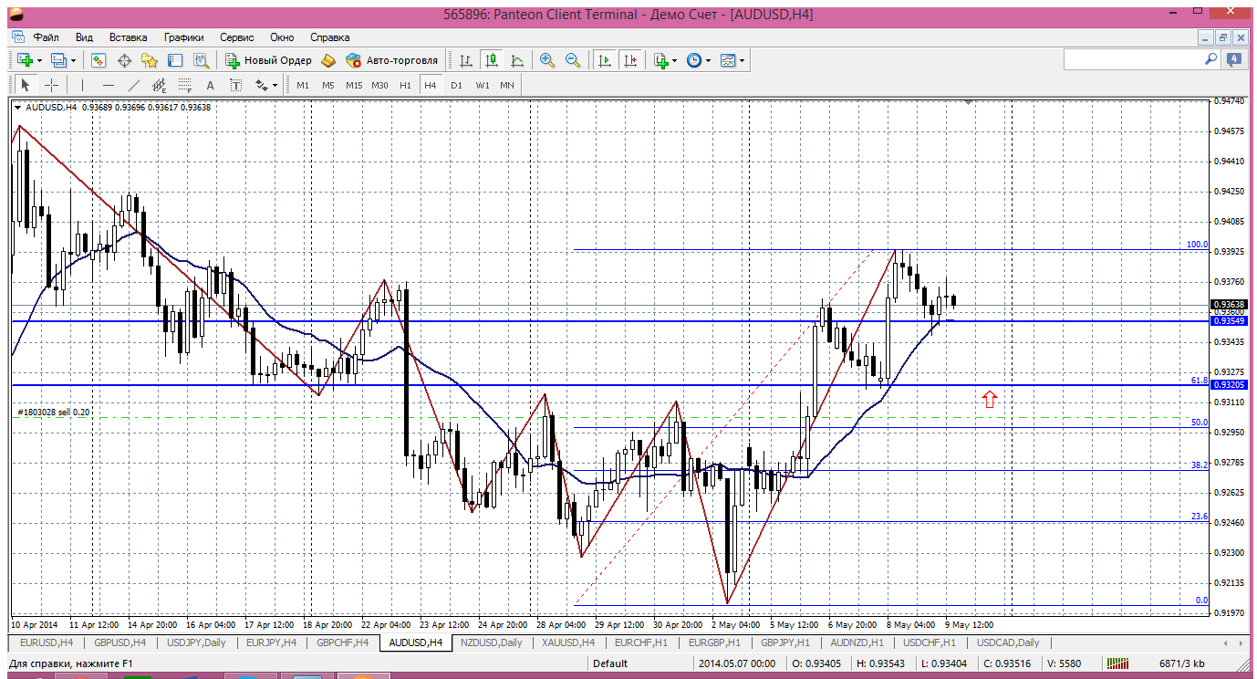 По паре вроде как тренд приличный на север, и даже снижение евровалют не смогло сильно снизить эту пару. Австралиец сегодня ночью протестировал мувинг на Н4, достигнув уровня 0.9354 сразу вверх. ( тогда же можно было пару и покупать, а сейчас уже не стоит). Второй тест может оказаться успешным и мувинг будет пробит. Остается ждать теста следующего серьезного уровня - это получается 38.2 % по фибо, а это проходит по цене 0.9320. При первом тесте можно будет австралийца и купить. Пока так получается.... Хотя эта пара откаты более глубокие обычно делает. Прикрепленные файлы: