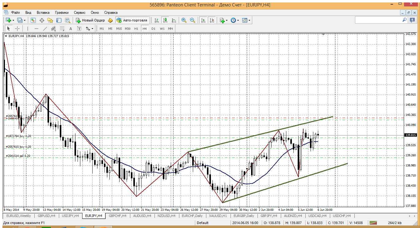 евро-йена, "третья моя любовь" - тоже валится. Но по этой паре в целом хоть картина на графиках не поменялась. Хотя утро начинали с уверенного теста отметки 140, а потом буквально рухнули и даже мувинг на Н4 не смог хотя бы приостановить снижение. Ну что ж, коррекция будет чуточку глубже. В районе трендовой, по цене 139 пару можно купить. Прикрепленные файлы: