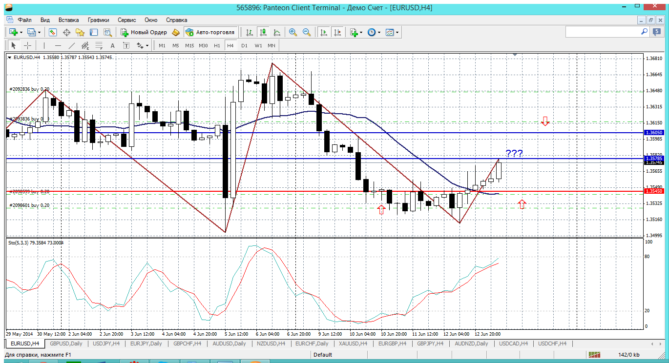 Итак по евре пока не лезем ни в какие продажи - опасно. Очень может быть, что полетит вслед за фунтом и хотя протестировали 1.3578 (первое сопротивление внутри дня), просто ждем небольшого отката - 1.3560 (50% от сегодняшнего роста) или 1.3545 (пивот дня) - и покупаем..... о продажах в фигуре 1.36 говорить будем, не раньше.... Прикрепленные файлы: