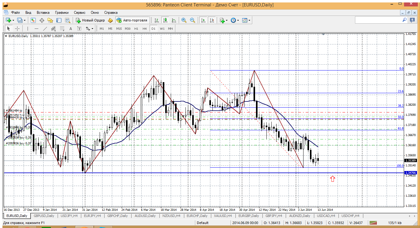а с евробаксом твориться что то не очень понятное....как будто решили на этой неделе отыграть новости прошлой...странно, если честно. Но на Н4 пока ничего не изменилось и не изменится, все это снижение укладывается в рамки обычной коррекции. Сейчас цена на подходе к уровню 76.4 по фибо (1.3543), да и до поддержки внутридневной 1.3528 совсем близко. Получается из этой зоны можно покупать.
