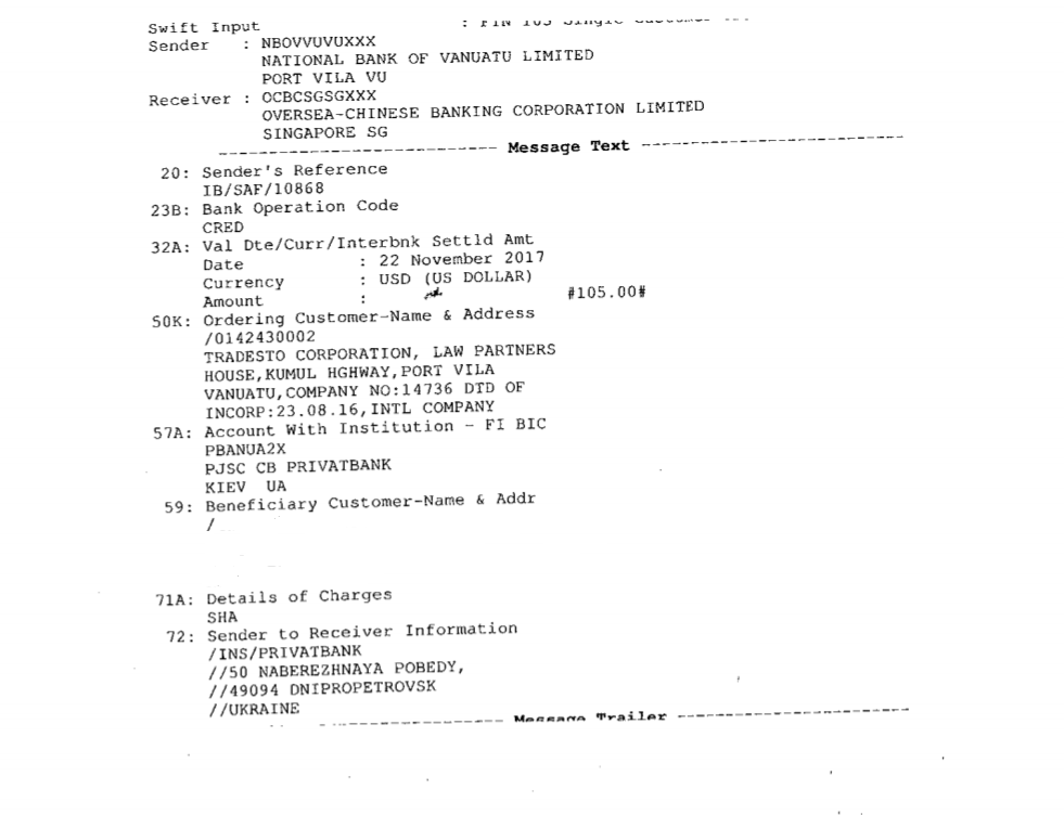 Внезапно пришли деньги с Традесто, но теперь банк не хочет выплачивать, мол страна отправитель Вануату, а по ней запрет, мол отмывание денег, финансирование тероризмы и т.д., так что деньги пойдут назад отправителю.