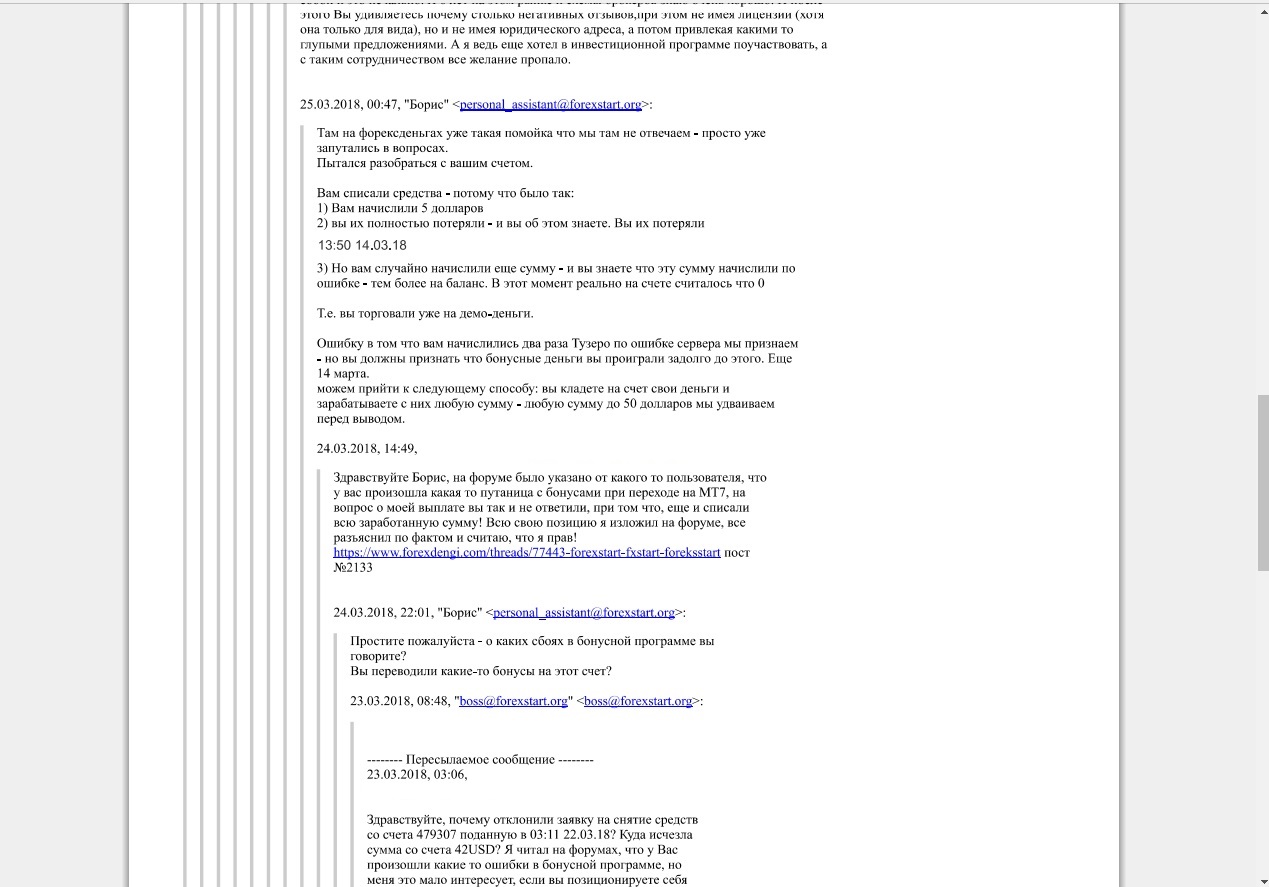 Вот наконец то закончилась моя история с Форексстартом, сначала отмазывались, а теперь основываясь на своем сбое, что бонус мне начислили по ошибке, просто забрали заработанную прибыль. Прикрепленные файлы: