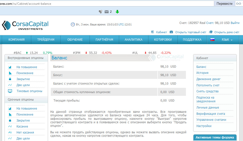 udobstvoПричем здесь Корса, речь шла о HYМаркетс. А в Корсе, кстати, давно форекса нет, это бинарные опционы и, пока не заработаешь первую двадцатку, эта сотня погоды делает не больше, чем вложил бы своих 3 доллара. И не платят ...