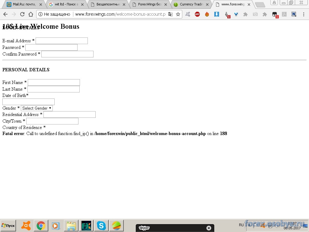 Кто нибудь здесь получал бездепозитный бонус 10 долларов? http: //www.forexwings.com/forex-promotions-offers/live-test-free-bonus-forex-account.php. На почту пришло письмо что нужно кликнуть на кнопку для подтверждения почты, но после клика открывается страница с ошибкой. Я на счет этой ошибки написал на почту в службу поддержки, жду ответа :glasses: . От меня просто так не избавиться :glasses: .