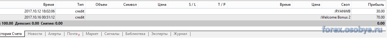 Если кто так сильно любит бонусы есть сайт superforex .так вот он дает бонус 100$ с маленьким кредитным плечем но при условии отработать за месяц 50 лотов.тоесть по 0.03 лота посчитайте сколько сделок вам надо открыть в плюс чтоб всю прибыль снять..да и терминал у них свой ,какойто замудренный, свечи не такие как в мт4. даже есть такие сигналы по свечам как брошенный младенец( кто понимает о чем я) а в мт 4 их нет..лично проверял