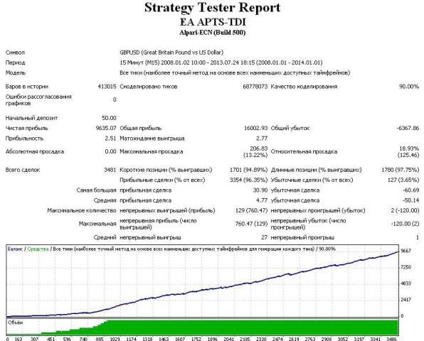 EA APTS-TDI имеет Качественный программный код, прибыльный торговый алгоритм.