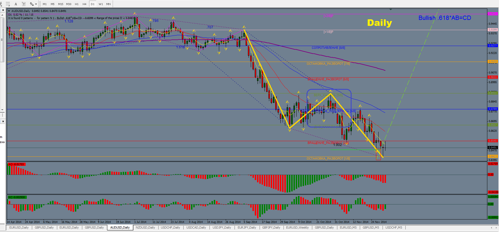 В конце прошлой недели мы говорил про ситуацию на австралийце/доллар и возможном движении пары вверх порядка 200пп. Вот скрин. ![]() Там где расходятся маленькие синяя и красные линии это бывло нчало недели. Синяя - предполагалось куда пойдет цена и на сколько . Красная - куда пошла цена. Счита что в этом случае не все было учтено при прогнозе - а именно то что австралиец валюта сырьевая. Нефть дешевеет и перед заседанием ОПЕК продолжала падать когда стало известно что не будут повышать цены и уменьшать добычу. Вот и получилось так. | ||||