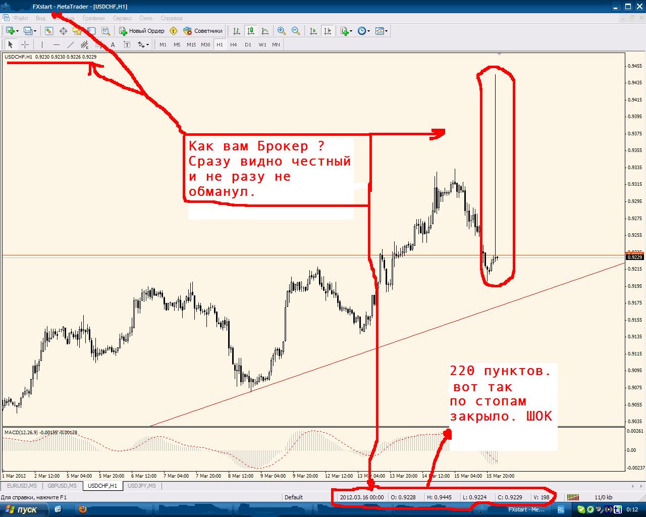 Для новичков - супер! Навверное, самое быстрое открытие-закрытие ордеров, даже в убыток брокеру. Ввод-вывод без проблем (правда, торговал на центовом счете, но суммы не центовые :) Крупный счет открывать, как и многие, не решаюсь, но на центовых никаких проблем. Пару лет назад был сбой из-за перехода на другой сервер, за это выплатили компенсацию. Техподдержка хоть и не мгновенная, но реальна. За все время работы смутило только кидалово на золоте 09.2010 в виде огромной медвежъей свечи почти в 700 пунктов, на других ДЦ это называют небиржевой котировкой, а тут была типа реальная; представляю, сколько стопов выбило! Но на валютах ничего такого не наблюдалось. Вобщем, рекомендовать можно. |