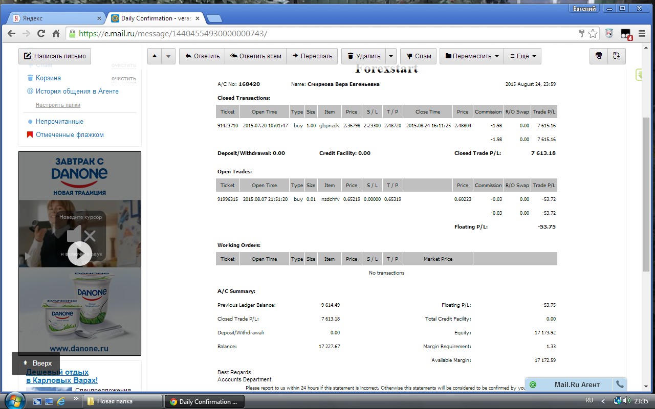 Даже если есть один тикет - мы обращаем на него внимание. Особенно если это касается развития компании. 24.08.2015 банк Новой зеландии объявил о ставках, все пары с NZD ломанулись в разные стороны. Мой ордер закрылся по тп. Заказала вывод 10000, оставив прибыль для дальнейшей торговли. На следующий день открыла терминал, ордер открыт, как ни в чём не бывало. Три дня пыталась связаться с администрацие, счёт обнулился. На четвёртый день мне объявляют: ордер переоткрыт из-за спайки. Подаю претензию, потом жалобу регулятору, по предложению админа почти два месяца на форуме непродуктивная дискуссия. На неоднократные призывы пояснить, по каким критериям определено, что это спайка, невразумительное мычание: "мы так считаем". Туфтовый регулятор такой же ответ. Прошу трейдеров высказываться. Прикрепленные файлы: