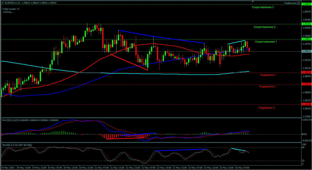 В связи с тем что по паре EUR\NZD торговля ведется выше ЕМА 24.50.100. дополнительный индикатор выше нулевой линии с показанием на понижение а основной индикатор дает сигнал на продажу. судя по показаний на рынке торговлю ведут медведи которые продвигают цену на юг. по пути следования сильный уровень фрактала и закрепление цены ниже этого уровня означает дальнейшее движение на юг до уровня 1.5942 Прикрепленные файлы: