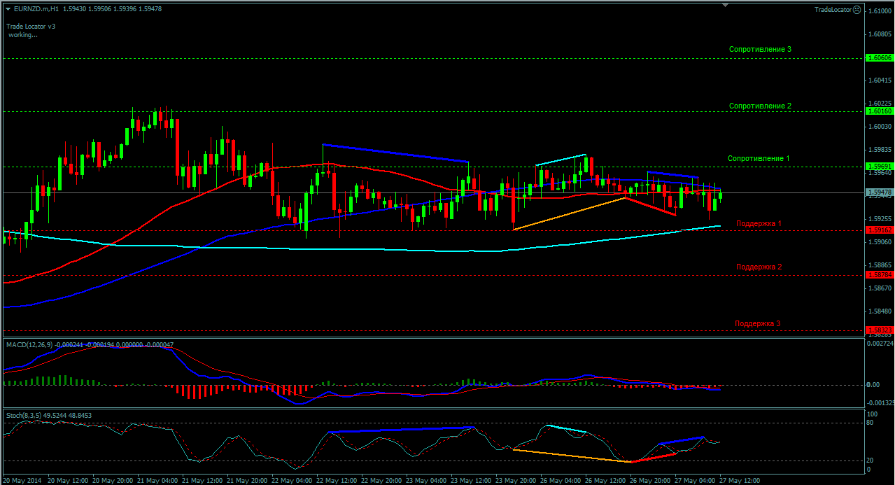 Пара EUR/NZD H1 торгуется в восходящем канале,ниже скользящих средних с периодами (50,100). Индикатор MACD -находится в отрицательной зоне и не подаёт чётких сигналов. Индикатор стохастик - находится между уровнями 20-80 и так же не подаёт чётких сигналов. Северные цели: сопротивление 1(1.5969), сопротивление 2(1.6016) и сопротивление 3(1.6060). Южные цели: поддержка 1(1.5916), поддержка 2(1.5878) и поддержка 3(1.5832). Прикрепленные файлы: