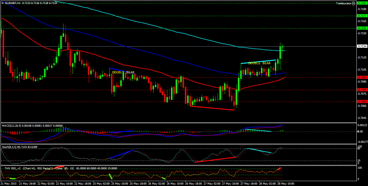 Пара EUR/GBP H1.Индикатор MACD - находится в отрицательной зоне и подерживает продажи. Индикатор стохастик -находится возле зоны перепроданности и пока так же поддерживает продажи. Индикатор RSI-поддерживает покупки. Северные цели: сопротивление -1(0.7095), сопротивление-2(0.7111), сопротивление-3(0.7126). Южные цели: поддержка-1(0.7050), поддержка-2(0.7033), поддержка-3(0.7013). Цена торгуется в нисходящем канале,ниже скользящих средних(ЕМА) с периодами (50,100,200).
