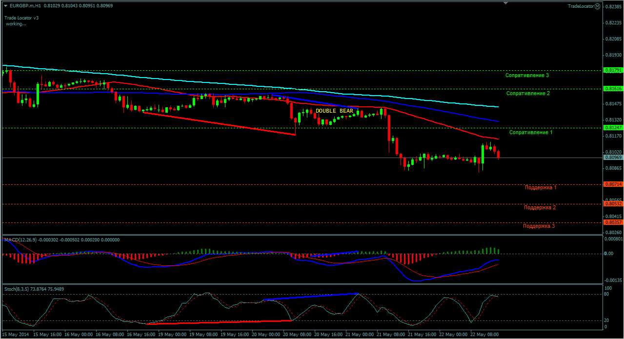 Пара EUR/GBP H1 торгуется в низходящем канале,ниже скользящих средних с периодами (50,100,200). Индикатор MACD - находится в отрицательной зоне и не подаёт чётких сигналов. Индикатор стохастик - находится возле зоны перекупленности и так же не даёт чётких сигналов. Северные цели: сопративление-1(0.8124), сопративление-2(0.8161) и сопративление-3(0.8179). Южные цели: поддержка-1(0.8071), поддержка-2(0.8053) и поддержка-3(0.8035). Прикрепленные файлы: