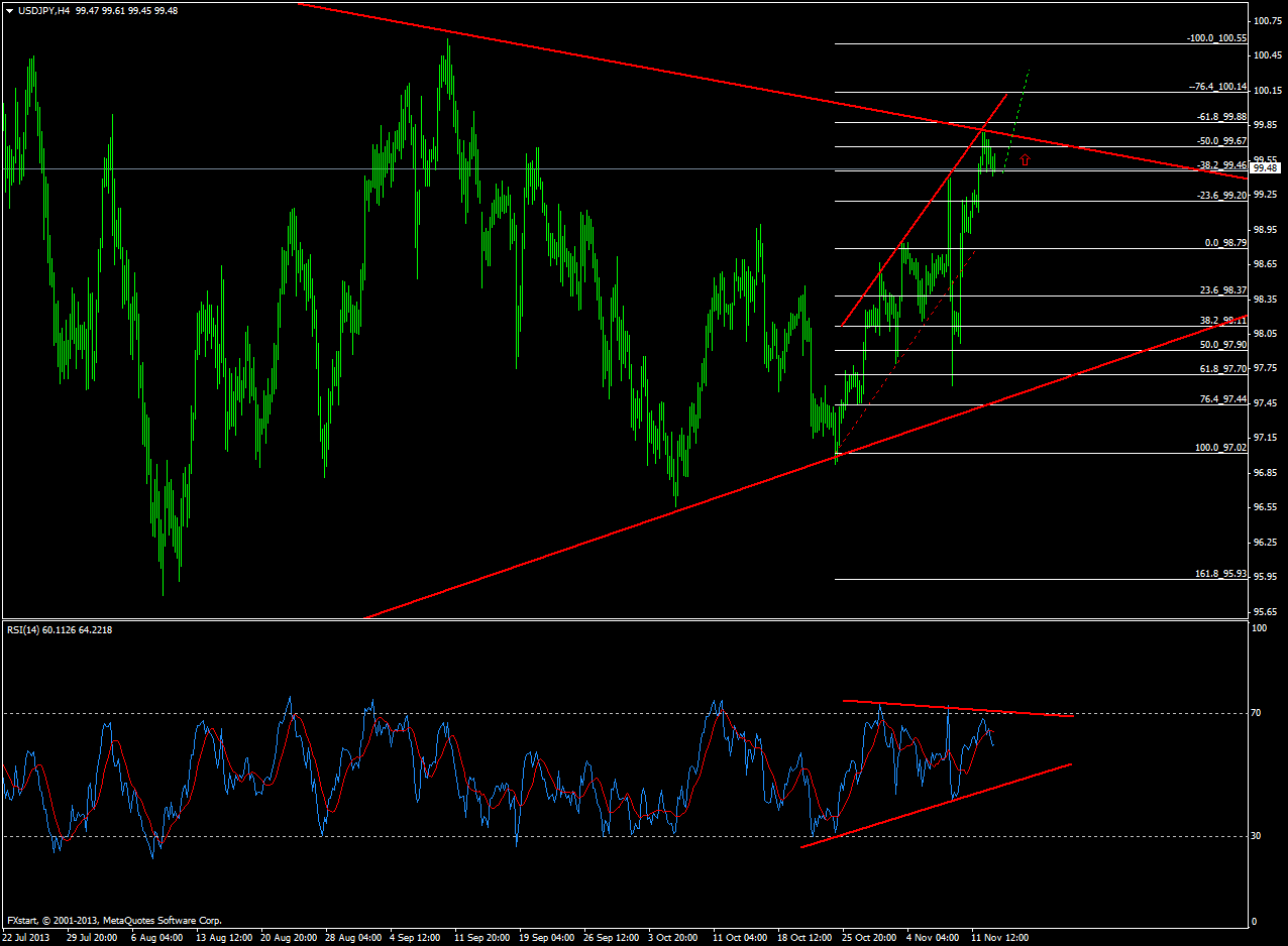 Пара доллар США японская йена, достигнув верхней границы треугольника (на дневном графике), отскочила и находится к районе 38 фиборасширения (99.45), сохраняя при этом неплохой потенциал для дальнейшего роста. RSI настроен на рост. В ближайшие дни ожидаю прорыв отметки 100 и открытия пути на 101 уровень Прикрепленные файлы: