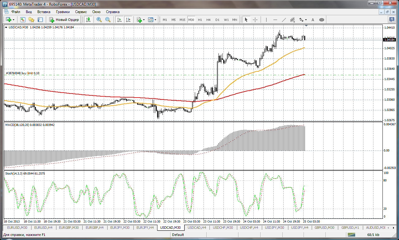 На данный момент по паре USD\CAD торговля ведется между ЕМА 24.50. дополнительный индикатор выше нулевой линии с показанием на понижение а основной индикатор дает сигнал на продажу.судя по показаний на рынке торговлю ведут медведи которые продвигают цену на юг. по пути следования сильный уровень фрактала и закрепление цены ниже этого уровня и означает дальнейшее движение на юг до уровня 1.0474. Прикрепленные файлы:
