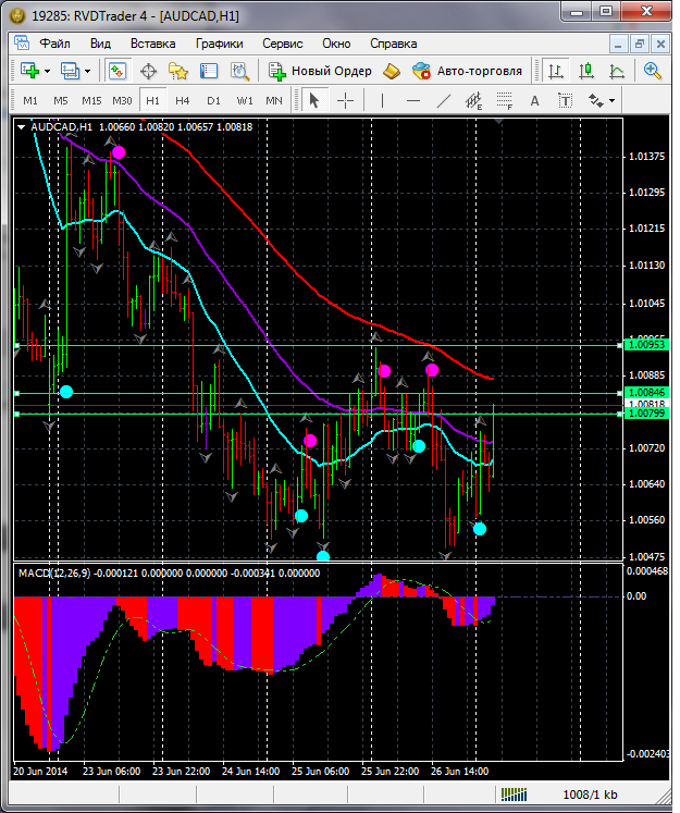 На данном тайфреме по паре USD\CAD торговля ведется между ЕМА 50.24. дополнительный индикатор ниже нулевой линии с показанием на повышение а основной индикатор дает сигнал на покупку. судя по показаний на рынке торговлю ведут быки которые продвигают цену на север. по пути следования сильный уровень фрактала и закрепление цены выше этого уровня означает дальнейшее движение на север до уровня 1.0699. Прикрепленные файлы: