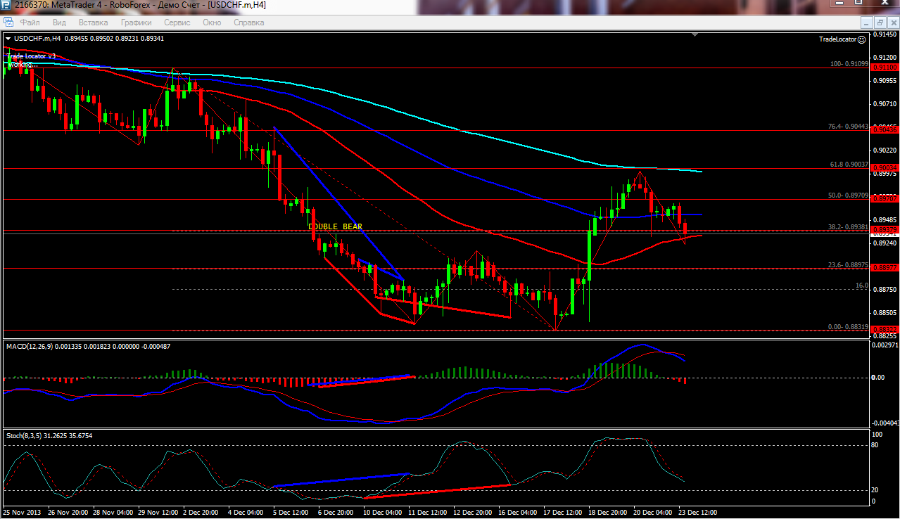 Пара доллар швейцарский франк продолжает отлично отрабатывать уровни. В настоящий момент пара тестирует на прочность 23-й фибоуровеь (0.8955). Основные индикаторы указывают на рост (Аллигатор, MACD, Awesome и Accelerator). Ждем появления фрактала на покупку Прикрепленные файлы: