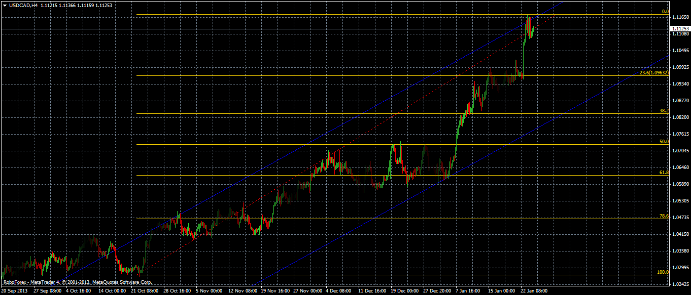 После пробоя линии сопротивления нисходящего голубого канала, валютная пара новозеландец доллар начала восходящее движение, сформировав восходящий розовый канал. После коррекции и на отбое от линии поддержки которого + от 38 или 23% фибо, вероятно, рост продолжится к 0.8303. После пробоя этого максимума, ожидаем дальнейшее восходящее движения. И только после пробоя линии поддержки канала, ждем коррекцию к 61% фибо.