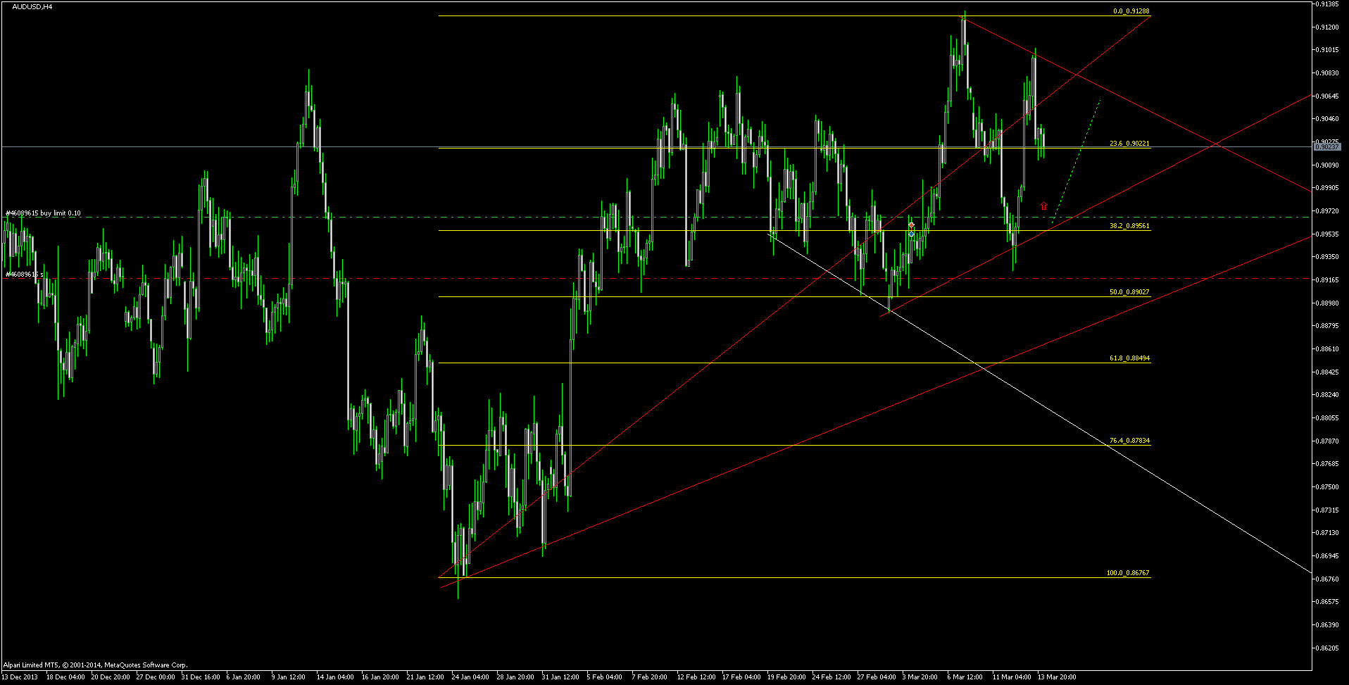 Валютная пара австралиец доллар продолжает торговаться в пределах восходящего канала. после коррекции и на отскоке от линии поддержки которого + от 23% фибо, ждем продолжение восходящего движения к 0.9108. После пробоя линии поддержки канала, вероятно, коррекционное движение продолжится к 38 или 61 фибо.