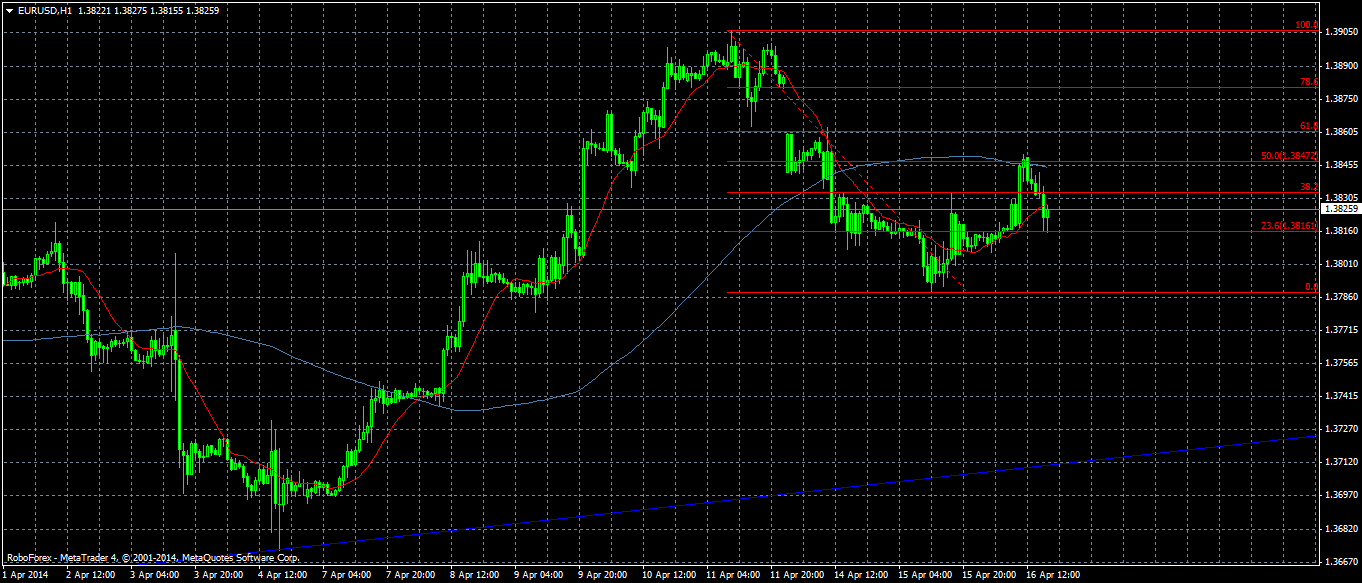 Пара EURUSD H4 торгуется в восходящем канале, выше скользящих средних с периодами (14,50,100,200) Индикатор MACD-находится в нулевой зоне и не подает четких сигналов.Индикатор стохастик-приближается к уровню-80 и так же не дает. Южные цели-1.3816(фибо-38.2),-1.3789(фибо-50.0 , ЕМА-200) и 1.3761(фибо-61.8) и -1.3727(фибо-76.4).Северные цели-1.3868(фибо-16.0) и 1.3905 локальный максимум этой недели. Прикрепленные файлы: