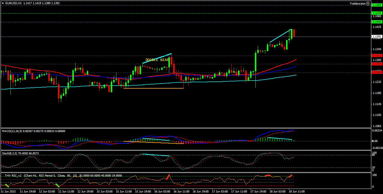 Пара EUR/USD H1. Индикатор MACD -находится в положительной зоне и поддерживает покупки. Индикатор стохастик -находится возле зоны перекупленности и поддерживает покупки. Индикатор RSI-так же поддерживает покупки. Северные цели: сопротивление -1(1.1444), сопротивление-2(1.1476), сопротивление-3(1.1505). Южные цели: поддержка-1(1.1322), поддержка-2(1.1291), поддержка-3(1.1261). Цена торгуется в восходящем канале,выше скользящих средних(ЕМА) с периодами (50,100,200).
