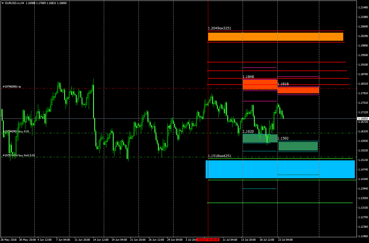 Анализ валютной пары EURUSD на следующую неделю. Прогноз прошлой недели что мы увидим пробой вверх или вниз с обновлением хай или лоу июня месяца не оправдался. Все падение закончилось тестированием недельного уровня и последующий рост котировок. Основной вариант на следующую неделю это продолжение роста до зоны 1,1900-1,1940 , месячный уровень и не тестированный уровень открытия недели 1,1940. Падение котировок в начале недели рассматриваю не ниже 1,1660.