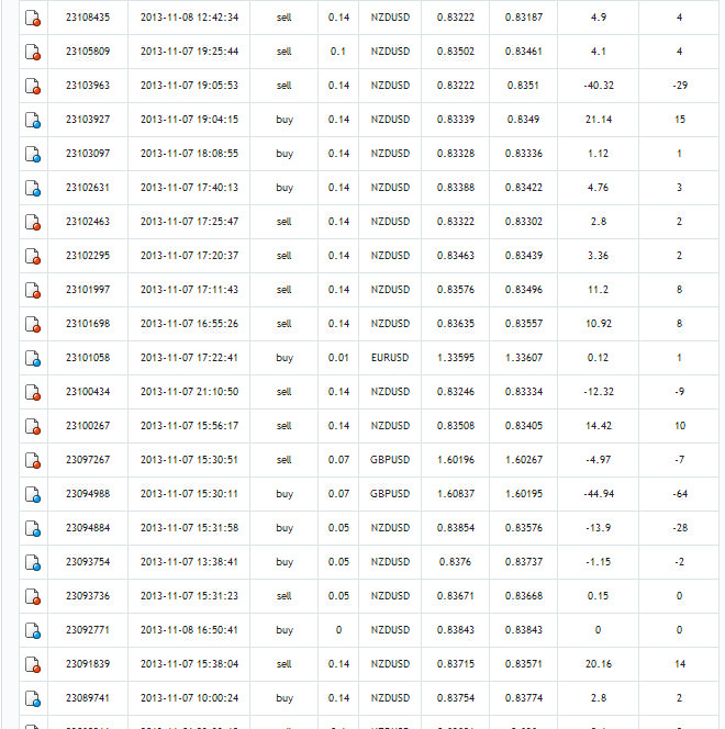 Два скрина сделок со счета Alexey11 и zika( небольшая часть)
