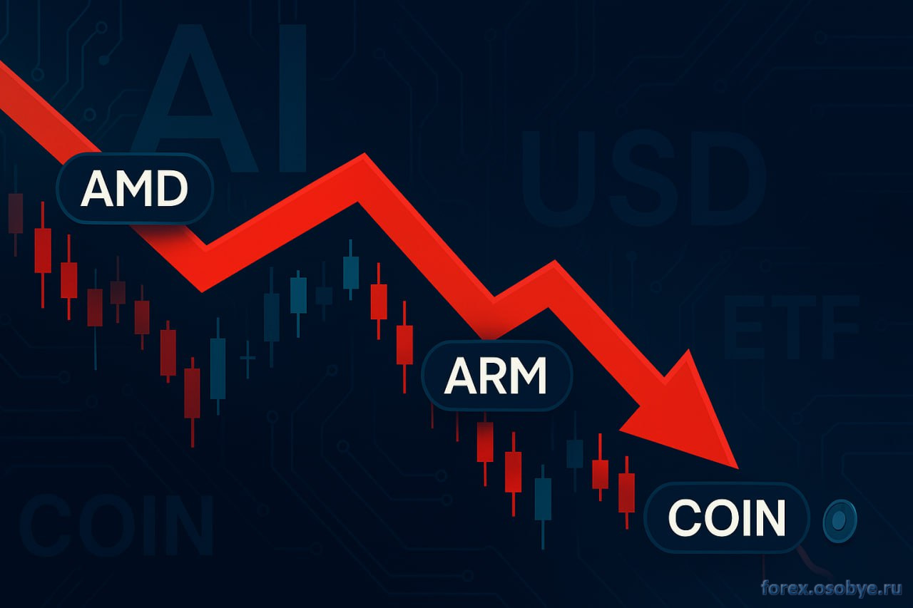 В последнее время акции Advanced Micro Devices(#AMD), Coinbase Global Inc(#Coinbase), Oracle Corp.(#Oracle), NVIDIA Corp.(#NVIDIA) и Arm Holdings plc(#Arm) оказываются под давлением на фоне переоценки искусственного интеллекта(ИИ) и осторожности к рисковым активам. Инвесторы нервно реагируют на стоимость капитала, темпы монетизации ИИ и устойчивость спроса в смежных экосистемах.