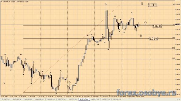 Покупки пары евро\швейцарец по прошлому прогнозу от 38% фибо пока в прибыли, а от 23% фибо в ноле с целями 1.0381. На отбое от 23 и 38% фибо пару рекомендую покупать с целями 1.0381. Стопы по ТС за уровни фибоначчи предыдущие. ![]() | ||