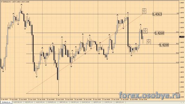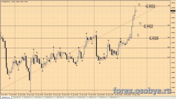 Покупки пары евро\австралиец по прошлому прогнозу от 38 и 23% фибо закрыты в профите и пара пробила целевой уровень 1.4363 и сформировала новый уровень 1.4551. Стопы рекомендую выставлять по торговой системе за предыдущие уровни фибоначчи. ![]() | ||