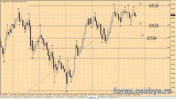 Продажи пары фунт\иена от 38% фибо по прошлому прогнозу закрыты в убытке и пара начала расти и сформировала уровень 179.01. На закреплении свечи выше 23% фибо и после отбоя от 38% фибо пару рекомендую покупать с целями 179.01. Стопы по ТС за уровни фибо. ![]() | ||