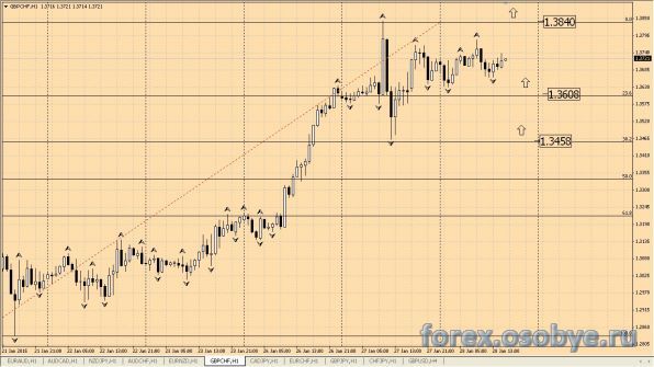 Покупки пары фунт\швейцарец от 23% фибо по прошлому прогнозу пока в прибыли с целями уровень 1.3840. После отката и на отбое от уровней поддержки 23 и 38% фибо пару рекомендую покупать с целями 1.3840. Стопы рекомендую выставлять за предыдущие уровни фибо. ![]() | ||