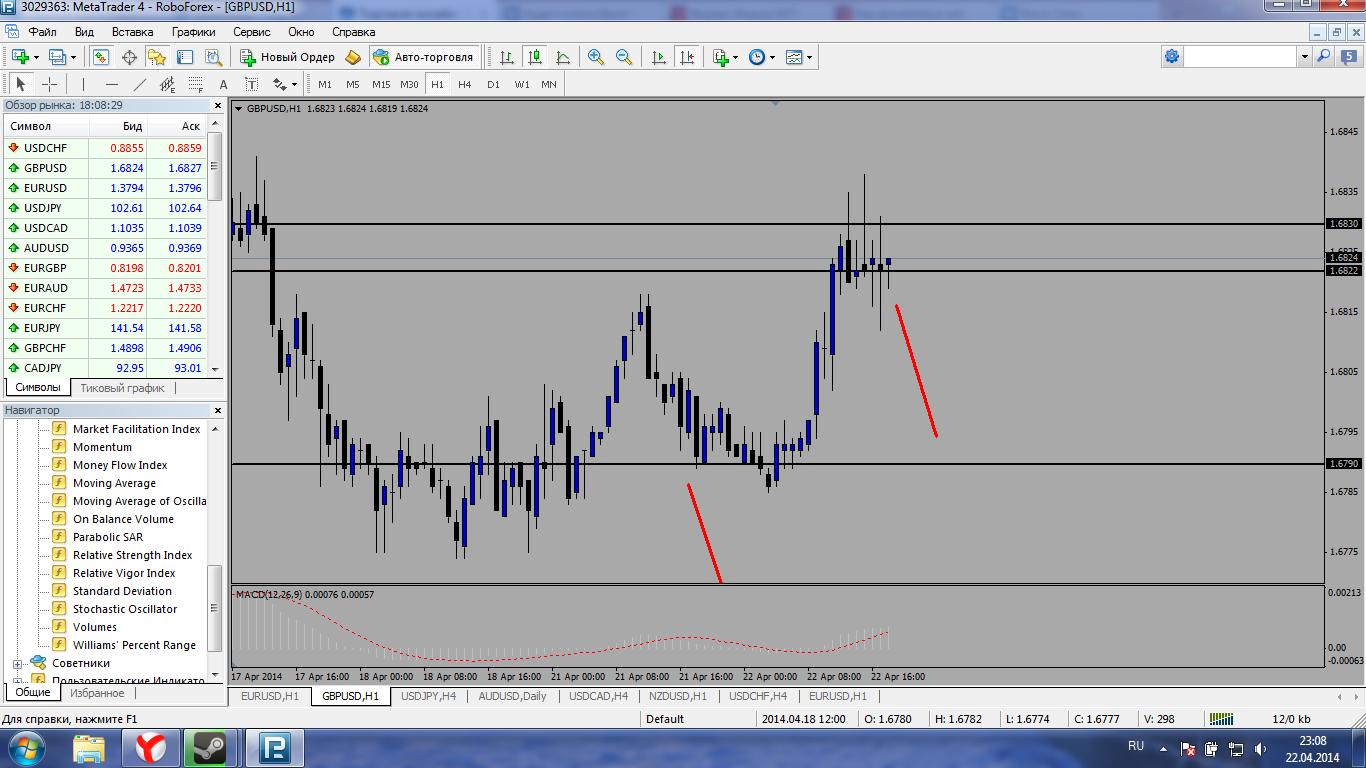 по паре евро -бакс с понедельника ожидаю пробития ценового уровня к отметке 1.3700 Вы полагаете, что EUR/USD будет снижаться до такого уровня? Все же не думаю, что пара дойдет до этого уровня. Есть два фибоуровня, которые пара должна преодолеть Это 1,3780 и 1,3720. Хотя машка на четырехчасовом графике предупреждает о том, что скоро начнется снижение. ![]() Редактировалось: 1 раз (Последний: 20 апреля 2014 в 06:38) | ||||
