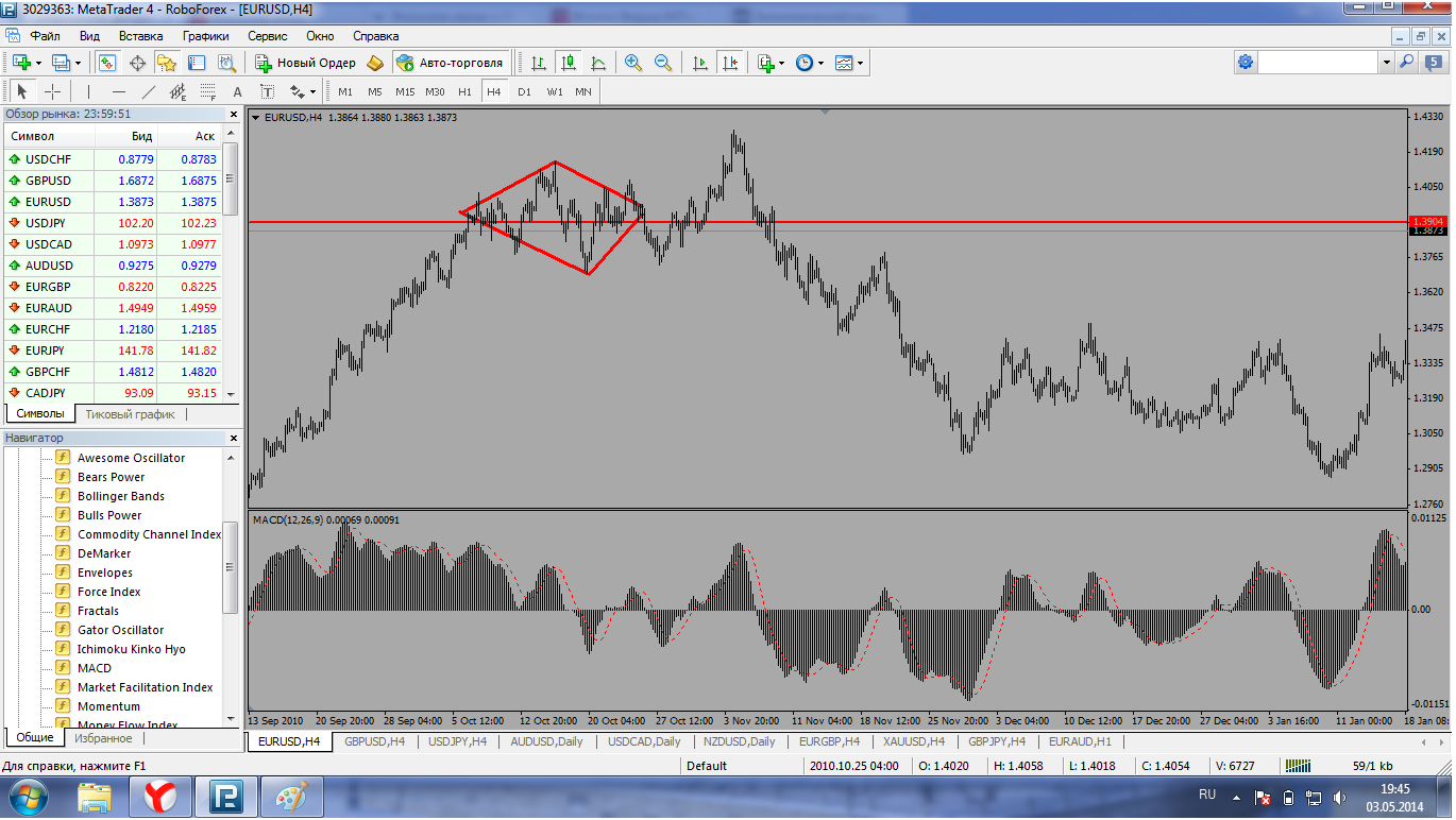 И последняя графическая фигура Бриллиант, это довольно редкая фигура, определяется определением и создания ромба по ценовым уровням. Фигура может быть как разворотной, так и продолжением тренда. Фигура довольно своеобразная, появляется в основном, когда на рынке творится полная неопределенность. Вот примерно как выглядит. ![]() ![]() ![]() Редактировалось: 1 раз (Последний: 28 апреля 2014 в 16:21) | ||||
