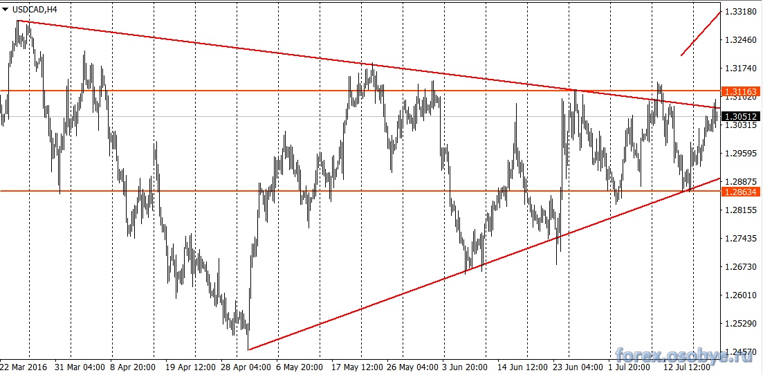 Канадский доллар, кстати, сам сейчас норовит выскочить из сходящегося треугольника на Н4. Правда и ложный пробой верхней границы уже был, я на нем сам чуток денег оставил.