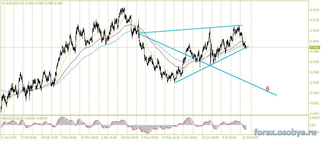 На четырехчасовом графике австралийца сформировалась волна вульфа, после пробоя нижней образующей линии ожидаю дальнейшее снижение к точке 6. |