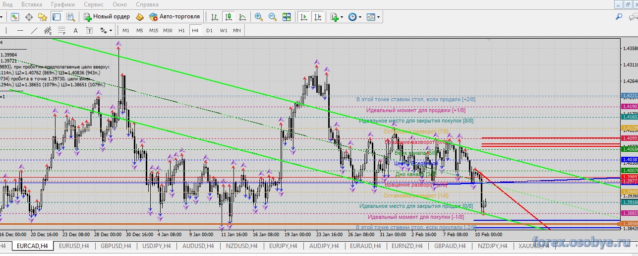 Оксана1978ok Валютная пара евро канадский доллар направилась вверх но не надолго. Сегодня цена закрепилась ниже пробитой линии поддержки треугольника и направляется уже вниз. Приоритеты поменялись, значит ваши индикаторы показывают правильное направление и первая цель 1.3817.