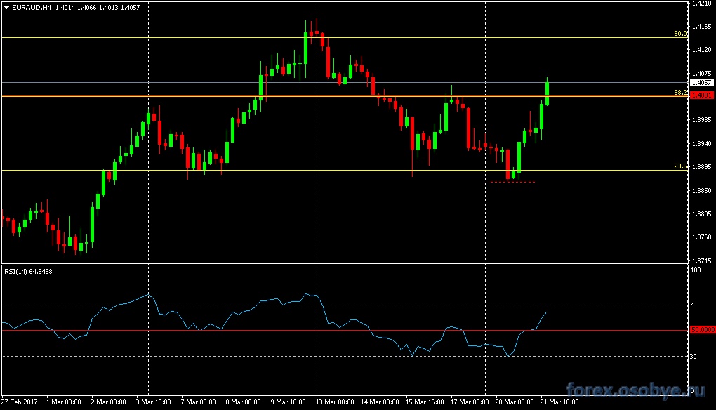 По кросс-курсу евро-австралийский доллар,разворотная фигура голова-плечи,как и предполагалось, в связи с её месторасположением,сегодня задействована не была,и цена направилась вверх-формируя диапазон, по всей видимости, по итогам месяца, цена может остаться в рамках диапазона прошлого месяца (февраля),и с продажами,пока, ИМХО, можно повременить до конца месяца. ![]() Редактировалось: 2 раз (Последний: 22 марта 2017 в 01:27) | ||||