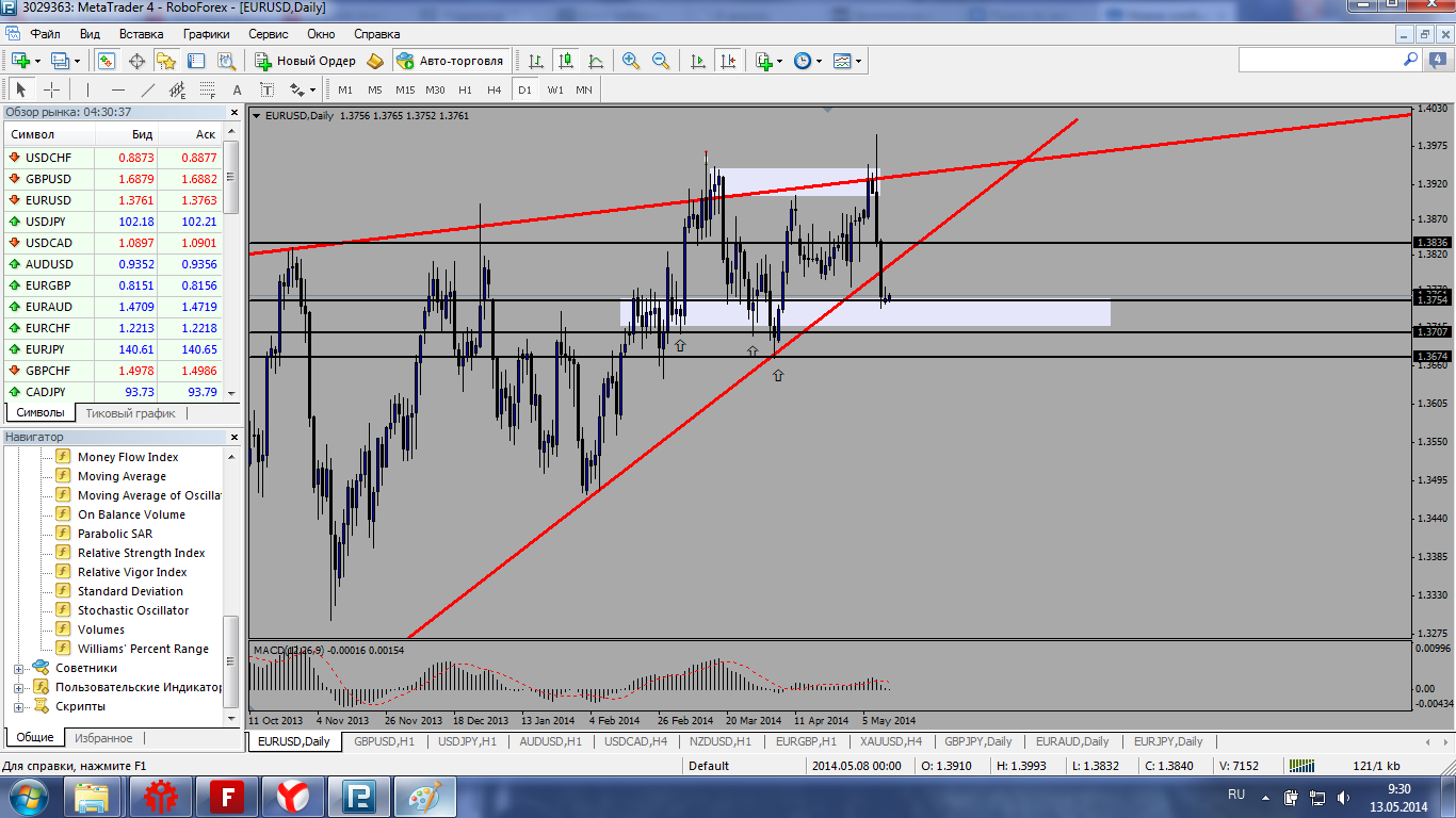 USD/JPY. По паре выделил зону для покупки очень хорошая зона вполне можем от нее развернуться. Если же смогут развернуть то думаю на дневках будем потихоньку двигаться на выход из треугольника на север. https://www.mql5.com/ru/charts/3249612/usdjpy-h4-robotrade-ltd | ||||